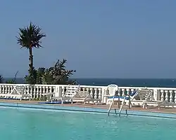 The Oyster Box is a luxury five-star hotel in uMhlanga, just north of Durban, South Africa. It is known for its spa and the outdoor pools which have views on the Indian Ocean.[1]