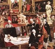 Detail from The Tribuna of the Uffizi (1722) by John Zoffany: The Wrestlers (centre) is surrounded by English and Italian connoisseurs at the Tribuna.