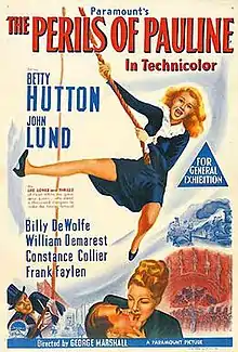 The Perils of Pauline is a 1947 American Technicolor comedy film directed by George Marshall and starring Betty Hutton, John Lund and William Demarest. It was produced and released by Paramount Pictures. The film is a fictionalized Hollywood account of silent film star Pearl White's rise to fame, starring Hutton as White.