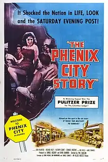 The Phenix City Story is a 1955 American film noir crime film directed by Phil Karlson[3] for Allied Artists, written by Daniel Mainwaring and Crane Wilbur and starring John McIntire, Richard Kiley, and Kathryn Grant.[4] It had a triple premiere held on July 19, 1955 in Phenix City, Alabama, Columbus, Georgia, and Chicago, Illinois.[5]
