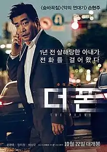 The Phone (Korean: 더 폰) is a 2015 South Korean action thriller film[4][5] directed by Kim Bong-ju. The film is the directorial debut of the director.[1] It was released on October 22, 2015.[2] This film is not to be confused with another South Korean film of similar title but released in 2002 or with the American TV series and the Dutch TV reality show both of which have the same title as this film.
