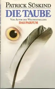 The Pigeon (German: Die Taube) is a 1987 novella by German writer Patrick Süskind. Taking place in a single day, the story follows a solitary Parisian bank security guard who undergoes an existential crisis when a pigeon roosts in front of his one-room apartment's door, prohibiting him entrance to his private sanctuary. The book was Süskind's follow-up to his nine-year bestselling first novel, Perfume and drew comparisons to the work of Franz Kafka and Edgar Allan Poe. [1]