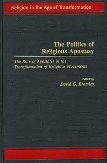 The Politics of Religious Apostasy: The Role of Apostates in the Transformation of Religious Movements is a 1998 book edited by David G. Bromley. It presents studies by several sociologists of new religious movements on the role played by apostates (described as individuals that leave new religious movements to pursue opposition against their former group.) The volume examines the apostate's testimonies, their motivations, the narratives they construct to discredit their former movements, and their impact on the public controversy between such movements and society.