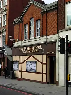 Shortly before The Poor School closed its doors, several long-serving staff members established The School in nearby Canonbury, offering a two-year acting training and short courses.[3] Like The Poor School, training at The School is timetabled around evenings and weekends to allow students to work and earn whilst they train.