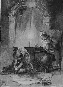 Other musical works inspired by the poem include a setting of "As Through the Land" composed by the poet Edward Lear in his lesser-known capacity as a composer.[17] Both Ralph Vaughan Williams and Frank Bridge composed settings for the "Tears, Idle Tears" section of The Princess.[lower-alpha 5] Gustav Holst set "Home They Brought Her Warrior Dead."[18] In addition, Holst wrote a set of five songs for female voices based on Tennyson's work including "Sweet and Low", "The Splendour Falls", "Tears, Idle Tears", "O Swallow, Swallow" and "Now Sleeps the Crimson Petal" while he was teaching at a girls' school in South London.[19] Among later musical works inspired by The Princess are Benjamin Britten's Serenade for Tenor, Horn and Strings, which includes a setting of "The splendour falls",[20] and a setting of "Ask me no more" by Ned Rorem.[21]