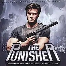 The Punisher: Original Motion Picture Score is the score to the 1989 film of the same name. The album was composed, orchestrated and conducted by Dennis Dreith.[6][7] It was released on July 19, 2005 on CD, it also features a 23 minutes interview with composer Dreith and the director Mark Goldblatt.[8] The interview focuses not only on the music itself but also much about the ill-fated circumstances which concerned the release of the original film.[9]