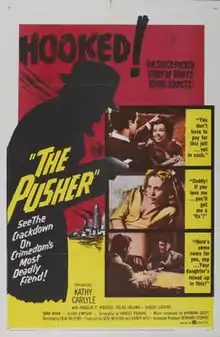 The Pusher is a 1960 American crime film directed and co-produced by Gene Milford. The screenplay—based on Ed McBain's novel of the same name, from his 87th Precinct series—was written by Harold Robbins. The film stars Kathy Carlyle, Robert Lansing, Felice Orlandi, Douglas Rodgers and Sloan Simpson. The film was released in February 1960, by United Artists.[1][2]