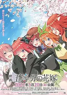 The Quintessential Quintuplets Movie (Japanese: 映画 五等分の花嫁, Hepburn: Eiga Go-Tōbun no Hanayome) is a 2022 Japanese animated romantic comedy film based on The Quintessential Quintuplets manga series by Negi Haruba and a sequel to the 2019–2021 anime television series adaptation. Produced by Bibury Animation Studios and distributed by Pony Canyon, the film is directed by Masato Jinbo from a script written by Keiichirō Ōchi and stars Yoshitsugu Matsuoka, Kana Hanazawa, Ayana Taketatsu, Miku Itō, Ayane Sakura, and Inori Minase. In the film, Futaro Uesugi plans to confess his love to one of the Nakano quintuplets during their final school festival.
