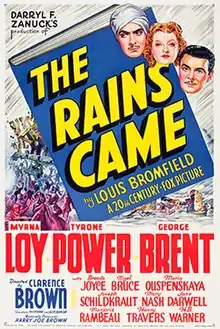 The Rains Came is a 1939 20th Century Fox film based on an American novel by Louis Bromfield (published in June 1937 by Harper & Brothers). The film was directed by Clarence Brown and stars Myrna Loy, Tyrone Power, George Brent, Brenda Joyce, Nigel Bruce, and Maria Ouspenskaya.