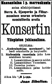 1. On 20 July 1905, the Helsinki-based music publisher Fazer & Westerlund (Helsingfors Nya Musikhandel) sold its Sibelius holdings (the publishing rights and printing plates) to the German firm of Breitkopf & Härtel.[3]