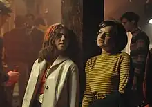 Peggy makes friends with a young photo editor at Life magazine named Joyce Ramsay (Zosia Mamet), who also works in the Time-Life Building. One day, Peggy is called out to reception at work, where Joyce invites Peggy to a party at a sweatshop converted into a loft, and Peggy says she'll come. After Joyce heads back, receptionist Megan Calvet (Jessica Paré) seems to dislike Joyce, suggesting that she is a bit pretentious. Peggy pretends to agree, although she clearly has taken a liking to Joyce. Later, at the party, Joyce introduces Peggy to her friends, who are a group of marijuana-smoking bohemian artists. Peggy fields a pass by Joyce, who seems to be lesbian, but finds herself attracted to Abe Drexler (Charlie Hofheimer), an abrasive yet charming underground newspaper writer, whom she soon kisses while the pair are hiding out from a raid which police have launched on the building. When the coast is clear, Peggy and Joyce escape down the street, laughing.