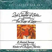 The Roar of Love is a 1980 concept album and fourth studio album by Christian band 2nd Chapter of Acts, that recounts the story of The Lion, the Witch and the Wardrobe, the first published book in The Chronicles of Narnia, a series by C. S. Lewis. It was recorded in 1976, prior to their third studio album Mansion Builder, but its release was delayed by contractual and copyright issues.[1] According to band member Matthew Ward, all the vocals were cut in a bedroom of the house the trio lived in at the time. They converted their garage into a mixing room, knocked a hole in the bedroom wall and ran a microphone cord into it. The songs have a heavy use of synthesizers. It was reissued on the Live Oak label.