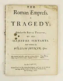 The Roman Empress is a 1670 tragedy by the writer William Joyner. It was first staged by the King's Company at the Theatre Royal, Drury Lane.
