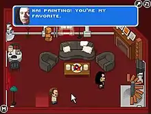 The Room Tribute (also known as The Room: The Game) is a point-and-click adventure game released on September 3, 2010, that serves as an unofficial adaptation of the 2003 film The Room directed by Tommy Wiseau. It was programmed by Newgrounds founder Tom Fulp, with artwork by Newgrounds staff member Jeff "JohnnyUtah" Bandelin, and music by animator Chris "OneyNG" O'Neill. The game was designed in the style of 16-bit graphics, much like similar games based on the films Tremors and The Hunger Games for Newgrounds' own 2010 and 2012 April Fools jokes.