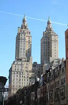 The San Remo is a cooperative apartment building at 145 and 146 Central Park West, between 74th and 75th Streets, adjacent to Central Park on the Upper West Side of Manhattan in New York City. It was constructed from 1929 to 1930 and was designed by architect Emery Roth in the Renaissance Revival style. The San Remo is 27 stories tall, with twin towers rising from a 17-story base. The building is a contributing property to the Central Park West Historic District, a National Register of Historic Places–listed district, and is a New York City designated landmark.