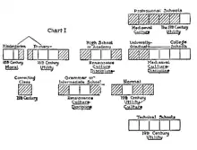 Dewey's chart of the development of education in history. From The School and Society, 1900.