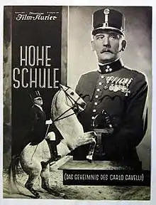 Hohe Schule, also known by its subtitle Das Geheimnis des Carlo Cavelli (English: The Secret of Cavelli[2]) is a 1934 drama film directed by Erich Engel. The English-language version was released in the UK between 1935 and 1939, and in the US in 1939. An outstanding specimen of the genre of the Wiener Film, this story of love set in the Austrian officer classes was one of the most successful German-language film releases of 1935. The English-language version was released in the UK between 1935 and 1939, and in the US in 1939.