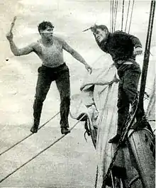 The story revolves around Shark Rawley, a sailor on a tramp steamer who saves a woman by the name of Doris Hall from the crew of the ship and its captain Sanchez. The film climaxes with the ship burning when a fire breaks out. Rawley and Hall escape and while waiting for the rescue boat they fall in love with each other.[3]
