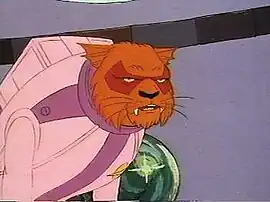 That the Kzinti's clothing and ships were depicted in shades of pink was long rumored to be due to director Hal Sutherland suffering colorblindness,[6][7][8] but this was contradicted by Bob Kline, Filmation designer and layout artist, who stated in a podcast interview that the color choices were the work of color stylist Irv Kaplan.[9] An apology was offered to Larry Niven for this oversight.[6]
