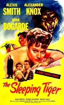 The Sleeping Tiger is a 1954 British film noir directed by Joseph Losey and starring Alexis Smith, Dirk Bogarde and Alexander Knox. It was Losey's first British feature, which he directed under the pseudonym of Victor Hanbury due to being blacklisted in the McCarthy Era.[2] It was shot at Walton Studios and on location in London. The film's sets were designed by the art director John Stoll. It was released by Anglo-Amalgamated while in America it was distributed by Astor Pictures.