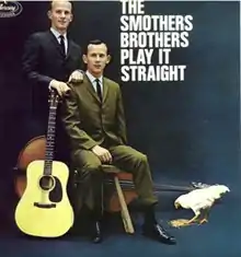 The Smothers Brothers Play It Straight is the ninth album by the Smothers Brothers (released February 15, 1966 on Mercury Records). As the title indicates, the folk comedy duo were singing the songs "straight" (well, "Almost"). Like the B-side of their second album, Two Sides of the Smothers Brothers, the recording was done in a studio instead of on stage. The album cover shows Tom standing with his guitar and Dick sitting on a stool with his bass lying behind him. There is also a chicken eating chicken-feed, which could be a representation of Frank, Tom's wagon pulling chicken who is discussed on Mom Always Liked You Best!.