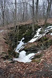 The Snow Hole is located in the Taconic Mountains, New York, USA along the ridge line between Bald Mountain and the White Rock (Taconic Mountains). It is a crevasse in which snow can be found well into the summer. The Snow Hole can be accessed by hiking the Taconic Crest Trail about 2.75 miles north from the Petersburgh Pass parking area just off of Route 2. The Snow Hole is located at 42°45.538′N 73°16.840′W / 42.758967°N 73.280667°W / 42.758967; -73.280667. Finding the location of the Snow Hole can be confusing, as several maps (including Google maps and USGS Berlin quadrangle, 1:25,000 scale - 1988) mark the location of the Snow Hole summit at 42°44′37″N 73°16′30″W / 42.743671°N 73.275118°W / 42.743671; -73.275118. However, that is a separate mountain summit and not the actual Snow Hole. The posted hiking map at the kiosk to the Taconic Crest Trail at Petersburgh Pass has the location correctly identified. Typically the crevasse has snow at the bottom of it year round.
