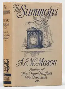 The Summons is a 1920 novel of adventure and romance by A. E. W. Mason, published by Hodder & Stoughton. Set just before and during the Great War, the novel recounts the adventures of Martin Hillyard, a secret service agent, and his army officer friend Harry Luttrell who aims to restore the battered reputation of his regiment.