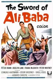 The Sword of Ali Baba is a 1965 American adventure film from Universal Pictures, directed by Virgil W. Vogel and written by Edmund Hartmann and Oscar Brodney. The film stars Peter Mann, Jocelyn Lane, Frank McGrath, Gavin MacLeod, Frank Puglia, and Peter Whitney and is a remake of the 1944 film Ali Baba and the Forty Thives, which was derived from The Book of One Thousand and One Nights and the tale of the same name .[1][2][3]