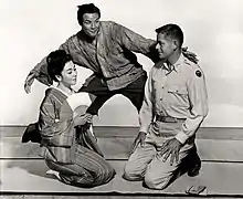 John Patrick adapted the screenplay from his own Pulitzer-Prize- and Tony Award-winning Broadway play of 1953. The play was, in turn, adapted from a 1951 novel by Vern J. Sneider.[3] The film was entered into the 7th Berlin International Film Festival.[4] The supporting cast features Glenn Ford, Machiko Kyō, Eddie Albert, Paul Ford and Harry Morgan.