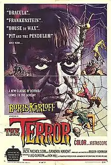 The Terror is a 1963 American independent horror film produced and directed by Roger Corman. The film stars Boris Karloff and Jack Nicholson, the latter of whom portrays a French officer who is seduced by a woman who is also a shapeshifting devil.