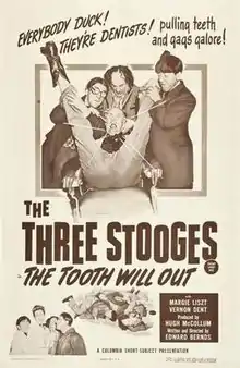 The Tooth Will Out is a 1951 short subject directed by Edward Bernds starring American slapstick comedy team The Three Stooges (Moe Howard, Larry Fine and Shemp Howard). It is the 134th entry in the series released by Columbia Pictures starring the comedians, who released 190 shorts for the studio between 1934 and 1959.