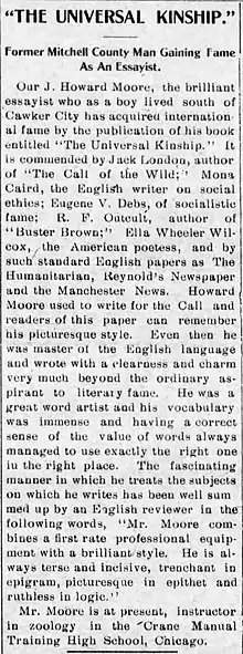 - ↑ Moore, J. Howard (1906). The Universal Kinship. London: Humanitarian League.