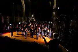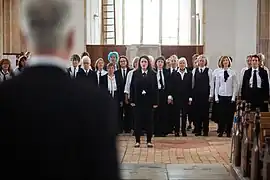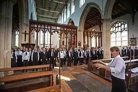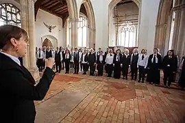 Plans to develop a new show for Spring/Summer 2020, inspired by the idea of a bird's-eye view of Holy Trinity Church in Blythburgh, had to be adapted as a result of the Covid-19 pandemic. The original intention had been to perform in the Church (known as the Cathedral of the Marshes) in July 2020. Since singing together in person was impossible, the project was re-designed as a film[24] that was premiered on 2 October at St. Mary's Works in Norwich. The film explores themes of flight, perspective, scale, solitude and connection; and was made by filmmaker Nathan Clarke, with Art Direction from Sal Pittman, including footage contributed by choir members over the course of the project. A prologue[25] to the film was also produced, consisting of images contributed by the choir and instrumental versions of some of the songs.
