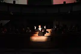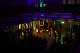 The Observatory was a site-responsive piece presented as part of the Norfolk & Norwich Festival and created as part of a partnership with the Sainsbury Centre for Visual Arts (SCVA) and the University of East Anglia (UEA). The piece was an exploration of humankind's relationship with space - and our gradual attempts to understand and explore it with the poetic, the scientific and the musical. Weightlessness, distance, fear of the unknown, infinity and astronomical geometry inspired this piece which was staged in and around the SCVA. The SCVA provided a futuristic background for this piece which informed the design of the show – and also the opportunity for the audience to experience this iconic building quite differently.