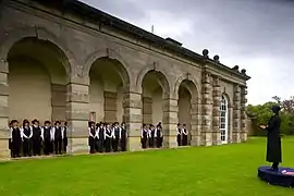 This piece was performed on 6 July 2019 at Houghton Hall. It was a promenade performance in the grounds of the Palladian house built in the 1720s for Britain's first Prime Minister, at a time when they were hosting a year-long exhibition (Nature and Inspiration) of works by Henry Moore, James Turrell (the Skyspace), Richard Long (the Earth Sky pieces) and Rachel Whiteread.