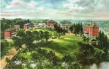 The Wartburg Orphans’ Farm School was established in 1866 by a Lutheran minister, Reverend William Passavant, with an initial gift of $30,000 from New York sugar refiner Peter Moller.[1] Originally, Moller had planned to use the funds to erect a lavish memorial for his son, whom he had lost in the American Civil War. However, Reverend Passavant, who had previously founded The Orphan's Home and Farm School in Zelienople, Pennsylvania, convinced Moller of the need for a similar orphanage in New York to help the great number of children left fatherless by the Civil War. Moller agreed and donated the $30,000 to help fund the new orphanage. With advisement from Reverend G.C. Holls, headmaster of the Zelienople orphanage and Sister Elizabeth, a nun affiliated with a similar orphanage in Rochester, Pennsylvania, Reverend Passavant searched for an appropriate property for the new orphanage. Ultimately, they settled on 125 acres (51 ha) of land in Mount Vernon, New York purchased from The Lutheran Committee for Charitable Concerns. On a visit to the property, Passavant was believed to comment that “This is something like the site of The Wartburg where Luther translated the New Testament,” of which Pastor Holls, later hired as the first director of The Wartburg, replied with “Then we will call it The Wartburg.”[2] The Wartburg was originally incorporated under the name “Deaconess Institution of the State of New York.” However, in 1884, a state charter was obtained, officially naming it “The Wartburg Orphans’ Farm School of the Evangelical Lutheran Church”. [3][4]