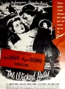 The Wicked Lady is a 1945 British costume drama film directed by Leslie Arliss and starring Margaret Lockwood in the title role as a nobleman's wife who becomes a highwaywoman for the excitement. The film had one of the largest audiences for a film of its period, 18.4 million.[7]