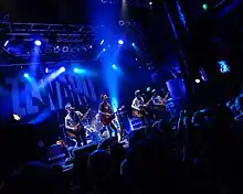 The Wild Feathers began touring in 2013, playing hundreds of show with acts like Bob Dylan, Willie Nelson, and ZZ Ward,[8] and playing at venues like Hangout Music Festival.[9] Their self titled album, produced by Jay Joyce, was released in the summer of 2013 and charted at #1 on the Billboard Heatseeker's Chart and at #109 on the Billboard 200, resulting in invites to appear on various television programs, as well as acclaim from major music publications.[10] Their single "The Ceiling" peaked at #7 on Adult Alternative Songs in October 2013.[11] Guitarist and vocalist Preston Wimberly left the band in late 2015.