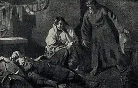 Saveliy departs to show the way. Raisa starts to pace to and fro, getting more and more agitated, breathing heavily, her eyes full of hatred. She sees her humble, dirty, greasy abode with the new eyes, with contempt and disgust. Suddenly she realises she might have had a better life, had she not been married to this worthless, dirty man. She bursts into tears and cries her heart out.