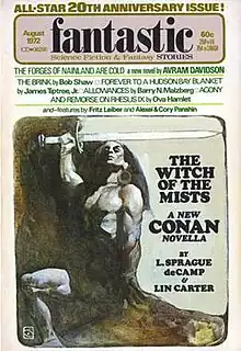 "The Witch of the Mists" is a fantasy short story by American writers L. Sprague de Camp and Lin Carter, featuring the fictional sword and sorcery hero Conan the Barbarian created by Robert E. Howard. It was first published in the August 1972 issue of the magazine Fantastic, and in book form by Ace Books in the paperback collection Conan of Aquilonia in May 1977.[1][2] The first British edition was published by Sphere Books in October 1978.[2]