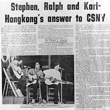 They were interviewed by the Hong Kong Standard newspaper and an article was published with headline "Stephen, Ralph & Karl, Hong Kong's answer to CSNY".