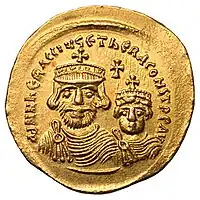 He was the son of the general and exarch of Africa Heraclius the Elder, and is usually regarded as the brother (although John of Nikiu suggests him to be the half-brother) of Heraclius.[1] Soon after Heraclius' overthrow of the emperor Phocas (r. 602–610), Theodore was appointed to the crucial post of curopalates, controlling the palace administration, which at the time was ranked second in importance only to the imperial office itself.[2][3]