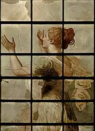 Mrs. Gwatkin is not, at present, like the Comic Muse of Reynolds, nor ever was. She had never the embonpoint, or the archness there represented. But she resembles Hope in the windows of New College. In Hope we see her figure, her features, and her air. Not long since (as themselves informed me), the person who shewed those windows to Mr. and Mrs. G. observed to Mrs. Gwatkin: "This figure of Hope, Madam, is a portrait of a niece of Sir J. Reynolds." - Richard Polwhele,1826[7]