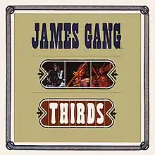 Thirds is the third studio album by the American rock band James Gang. The album was released in mid 1971, on the label ABC Records. It is the last studio album featuring Joe Walsh. "Walk Away" was released as a single, making the Top 40 on at least one national chart, reaching #51 on the Billboard Hot 100, the best placement of a James Gang single.[1] The album reached Gold status in July 1972.[2]