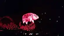 During concerts, Waters makes use of the Pink Floyd pigs from the cover of Animals, which he has used on most of his tours.