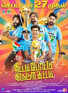 Thittam Poattu Thirudura Kootam (transl.The group that plans and loots) is a 2019 Indian Tamil-language heist comedy film directed by Sudhar and produced by Raghunathan. P.S. The film stars Parthiban, Chandran and Satna Titus in the lead roles. The cinematography was handled by Martin Joe, while the music was scored by Ashwath. Remiyan took care of the art direction while Billa Jagan took care of the stunts. Executive Producer for the film is Sriram. K.B. The film was co-produced by Chandrasekar. R.[1] The principal photography began in June 2016, and was wrapped up in October 2016.