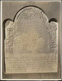 Thomas Cushman became ill in his old age and languished for some eleven weeks before he died on December 10 or 11, 1691.[2] He was buried on Burial Hill in Plymouth. His stone is among the oldest, of the second generation, on Burial Hill."[3][4]