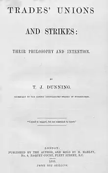 - ↑ Trades' Unions and Strikes: Their Philosophy and Intention by Thomas Joseph Dunning, p. 26.