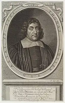 Thomas Fuller (baptised 19 June 1608 – 16 August 1661) was an English churchman and historian. He is now remembered for his writings, particularly his Worthies of England, published in 1662, after his death. He was a prolific author, and one of the first English writers able to live by his pen (and his many patrons).[1][2]