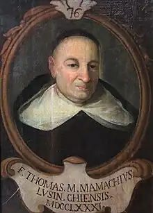 Thomas Maria Mamachi (December 4, 1713 in Chios June 7, 1792 in Corneto, near Montefiascone), was an Italo-Greek Dominican theologian and historian.